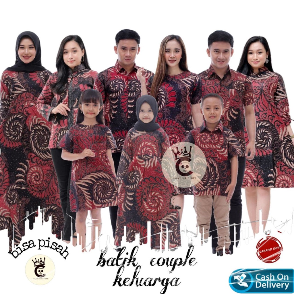 Name: Batik Couple Keluarga Modern Sarimbit Set Seragam Keluarga Motif Puser Merah Maroon Batik Pekalongan
