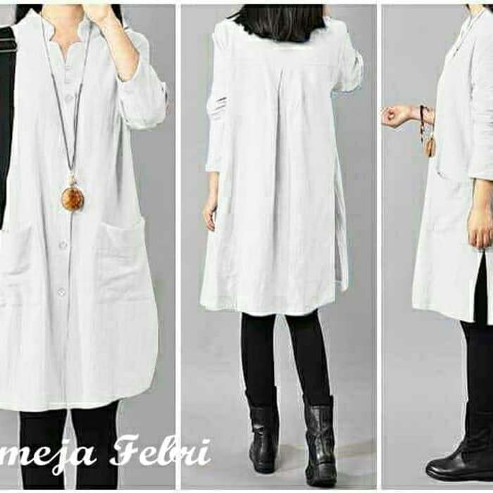 Distributor Fashion M di Kota Singkawang Avoda Tunic Atasan Batik Wanita Syar'i Bahan Katun Tunic Syari Ok891 Denim Febri - Putih dari Aborith_ Kota Jakarta Barat