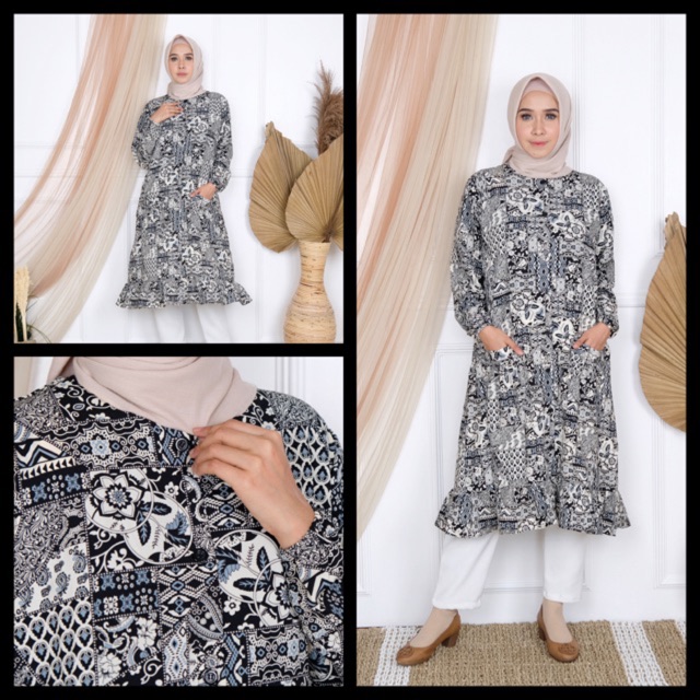Name: Tunik Wollpeach Batik Bunga - Jumbo Xxl Bumil Busui Kancing Full Hidup Kantong Adem Murah Bigsize