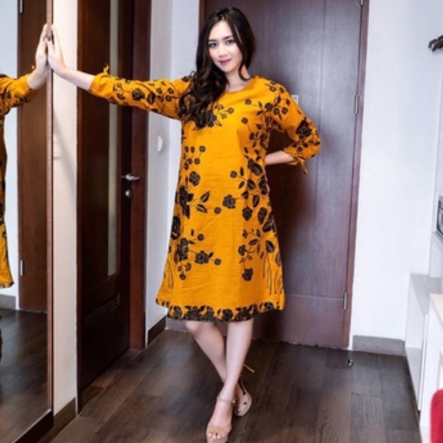 Distributor Pakaian W di Kabupaten Kutai Barat Tunik Batik Kuning Kawung Katun Wanita Merah Biru Hitam M-jumbo dari Tidak Ada Merek Kota Pekalongan