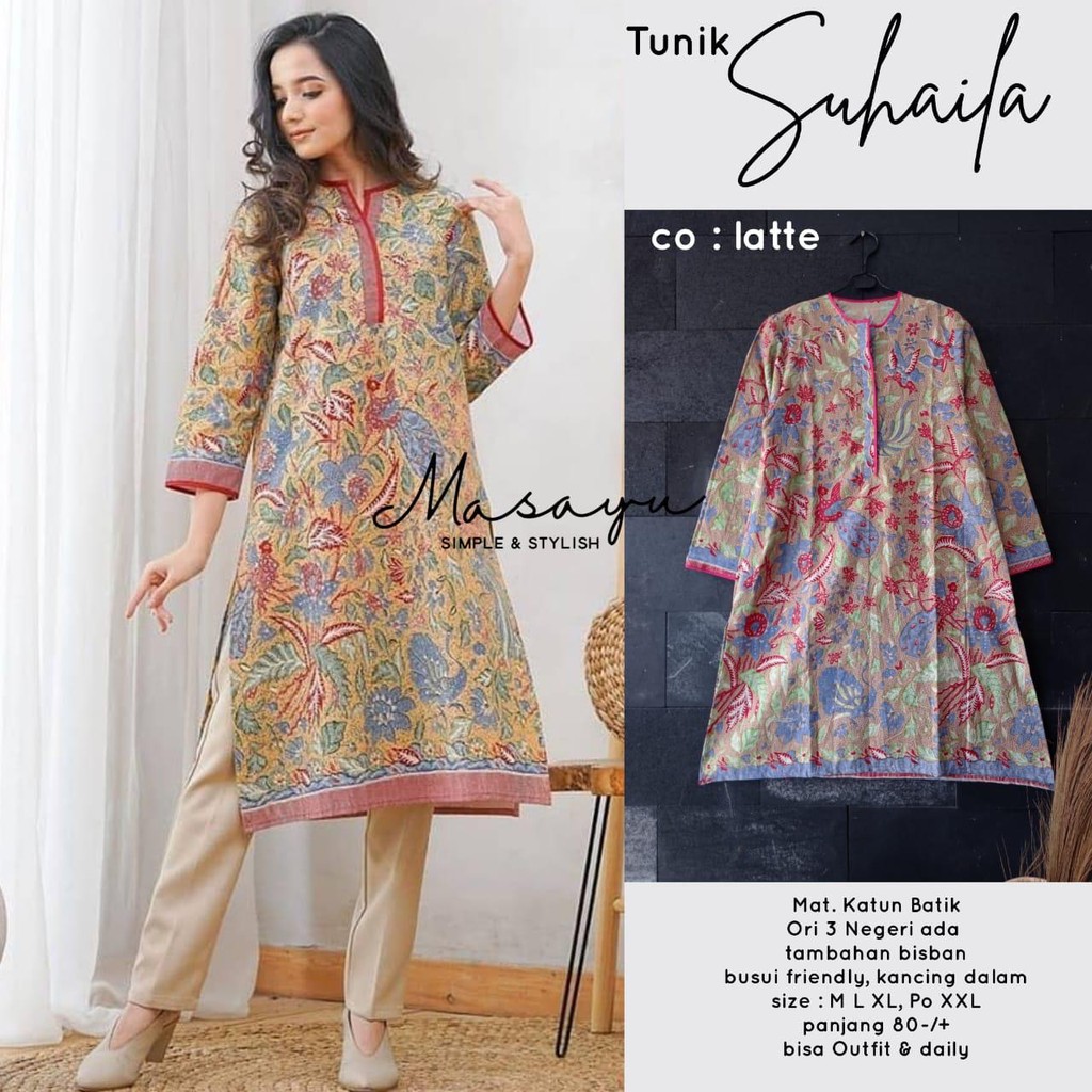 Sale Fashion M di Kabupaten Sukamara [premium] Tunik Suhaila Batik 3 Negeri Solo Midi Batik Handmade Modern Kerja Busui Muslim Kantor dari Tidak Ada Merek Kota Surakarta (solo)